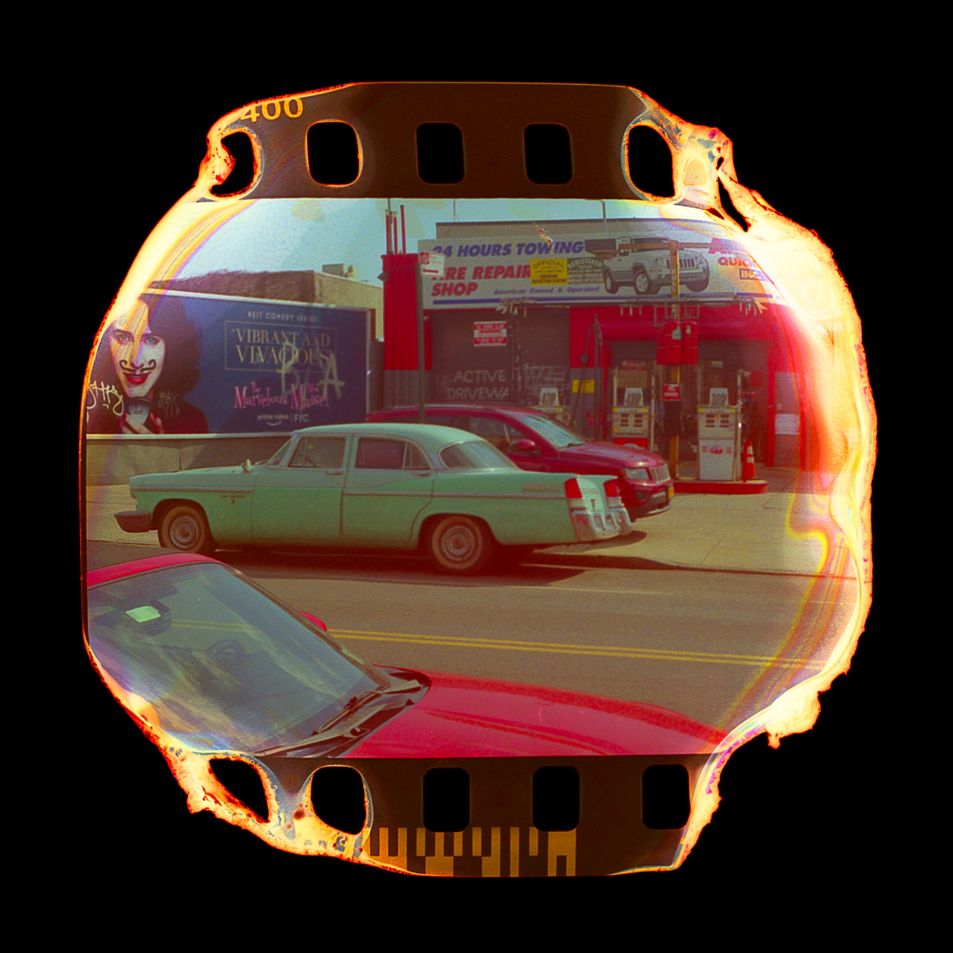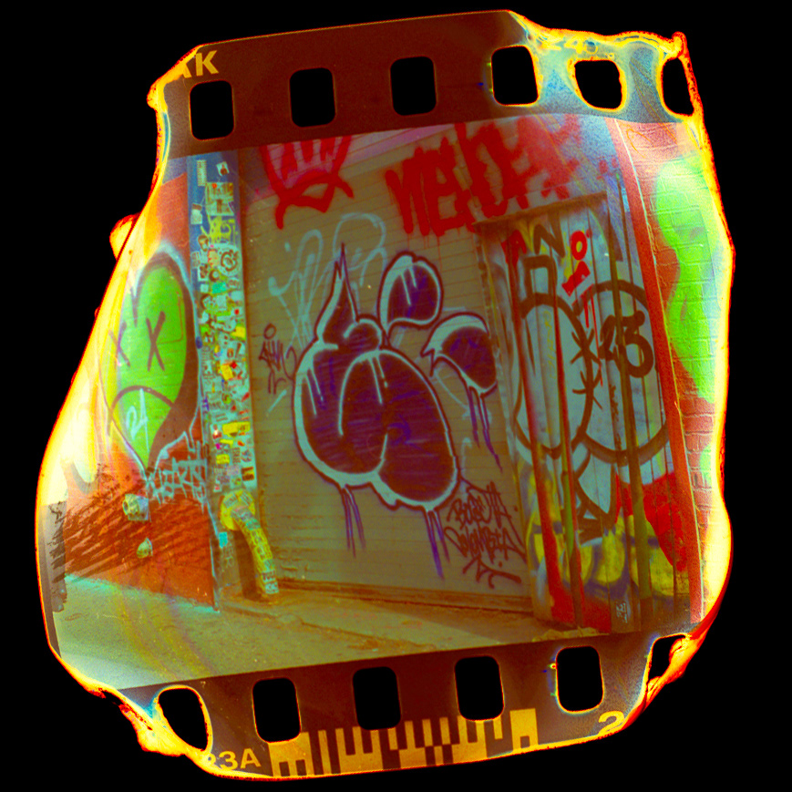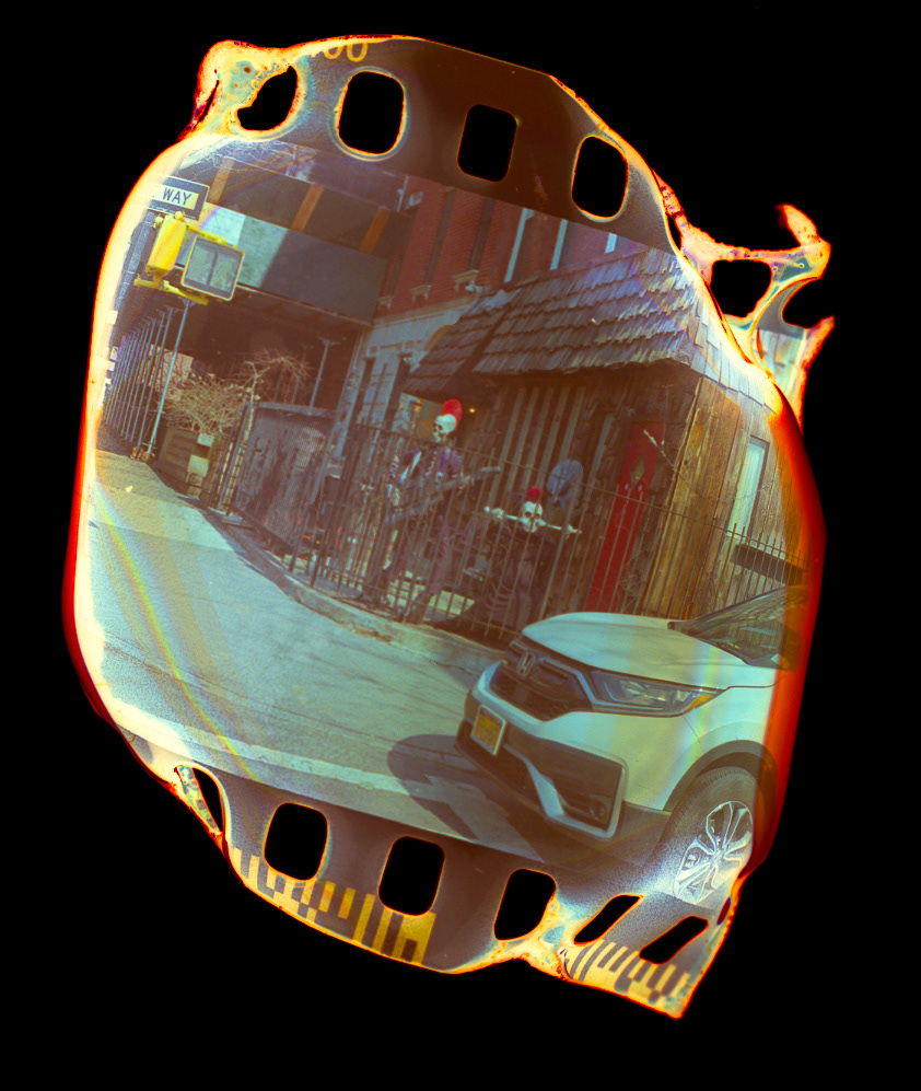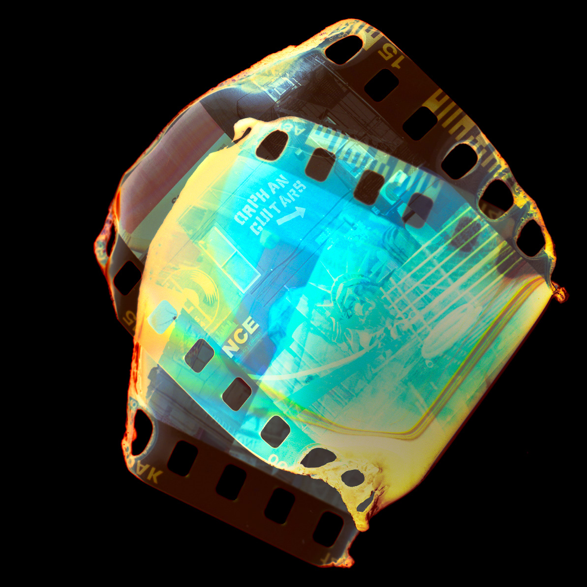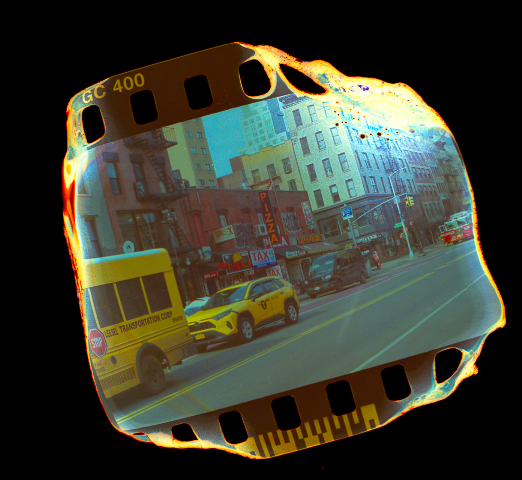 35mm film melted and burned after developing then scanned.